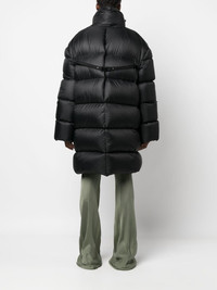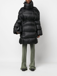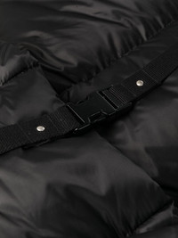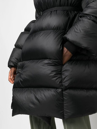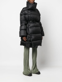 padded high-neck coat Highlights - Black - Feather down - Padded design - Quilted - Tonal stitching - High neck - Off-centre front fastening - Long sleeves - Elasticated cuffs - Detachable waist belt - Two side inset pockets - Straight hem - Mid-length Made in Italy Composition Outer: Polyamide 100%, Virgin Wool 100% Lining: Feather Down 100%, Cotton 100% SIZE & FIT Model measurements Height 5 ft 10 in(1.78 m) Bust/Chest 31.49 in(80 cm) Hips 37 in(94 cm) Waist 23.62 in(60 cm) FittingInformation Designed for an oversized fit, offering additional room throughout Made from a padded non-stretch fabric, giving it no natural elasticity This piece fits true to size – take your usual size Washing instructions Dry Clean Only