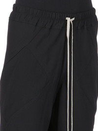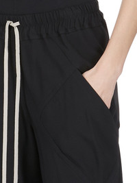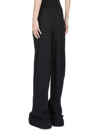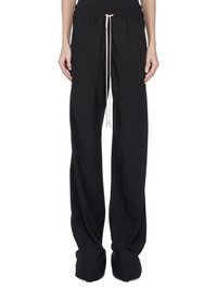 RICK OWENS SS25 HOLLYWOOD BIAS PANTS IN BLACK CADY THESE DRAWSTRING BIAS PANTS ARE FLOOR-LENGTH WITH A LOOSE FIT. THEY ARE BIAS CUT WITH DIAGONAL SEAMS TRACING AROUND THE LEGS. THEY HAVE SQUARE SIDE POCKETS, AN ELASTICIZED, RIBBED WAISTBAND WITH DRAWSTRING AND RAW CUT HEMS THIS MEDIUMWEIGHT CADY CREPE IS FLUID WITH A CRISP SURFACE TEXTURE AND A COOL SLICK BACKSIDE. THIS FABRIC IS MADE FROM FSC® CERTIFIED VISCOSE AND ACETATE WHICH ENSURES THAT THE FIBERS ARE PRODUCED FROM RESPONSIBLY MANAGED SOURCES AND NO DEFORESTATION OCCURS COLOR: BLACK MATERIAL: 84% VISCOSE + 16% ACETATE MODEL IS 181CM TALL MODEL WEARS SIZE 38