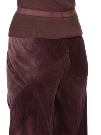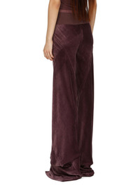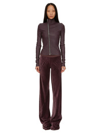 RICK OWENS FW23 LUXOR BIAS IN AMETHYST PURPLE VELVET THESE BIAS PANTS ARE FLOOR-LENGTH. THEY ARE BIAS CUT, LOOSE FITTING AND HAVE A RIBBED ELASTICIZED WAISTBAND AND RAW CUT HEMS THIS LIGHTWEIGHT AND FLUID VELVET HAS A SOFT AND WASHED UNEVEN FINISH. THIS FABRIC IS MADE FROM FSC® CERTIFIED VISCOSE WHICH ENSURES THAT THE FIBERS ARE PRODUCED FROM RESPONSIBLY MANAGED SOURCES AND NO DEFORESTATION OCCURS - COLOR: AMETHYST PURPLE - MATERIAL: 82% VISCOSE + 18% SILK - BAND 70% COTTON + 30% NYLON - MODEL IS WEARING SIZE 40 - MODEL IS 181 CM TALL
