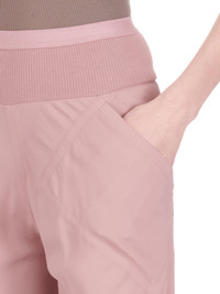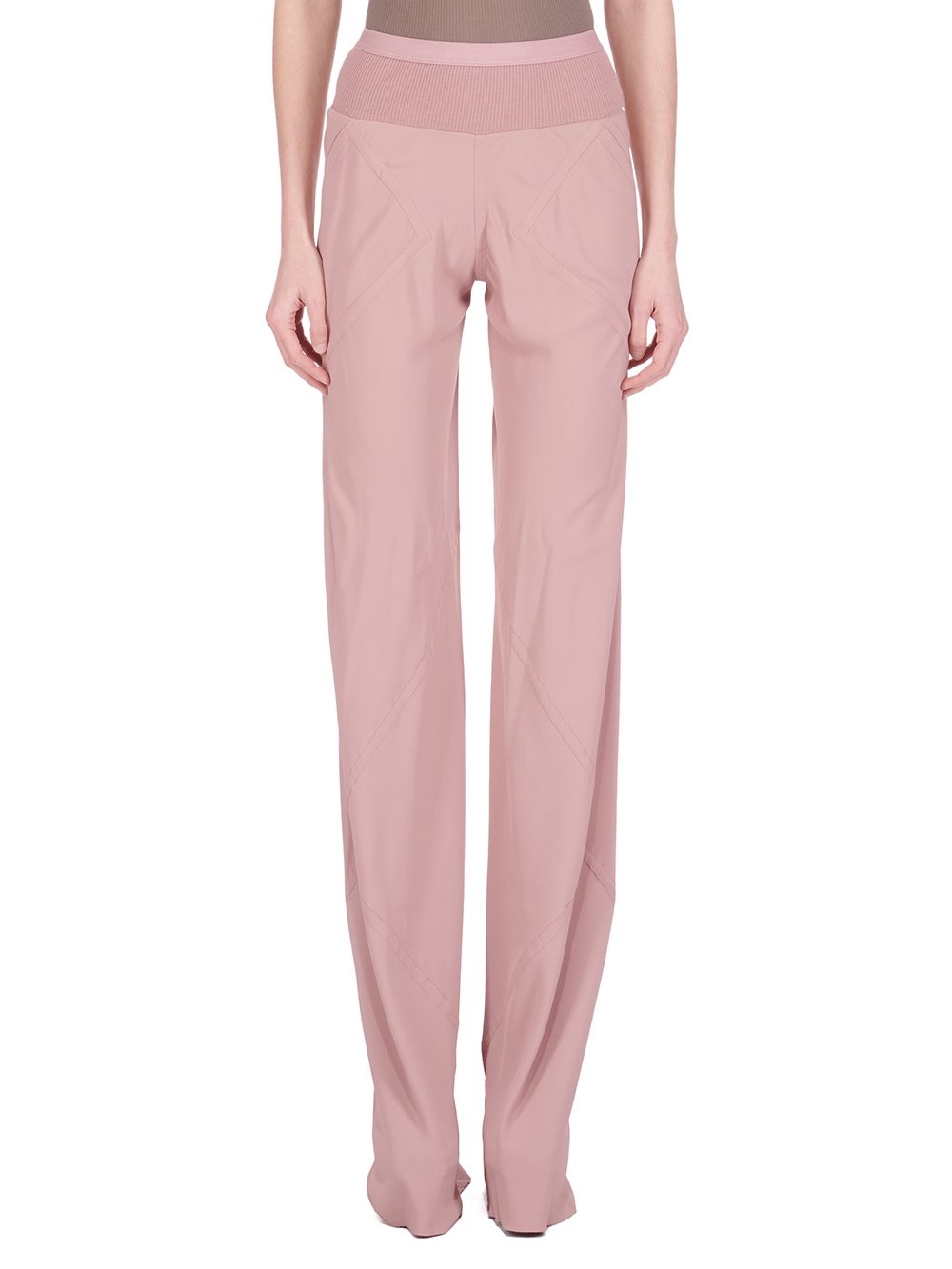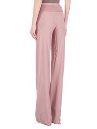 RICK OWENS SS24 LIDO BIAS IN DUSTY PINK COCOON CREPE THESE BIAS PANTS ARE FLOOR-LENGTH. THEY ARE LOOSE-FITTING WITH A BIAS CUT, A RIBBED ELASTICIZED WAISTBAND AND RAW CUT HEMS THIS LIGHTWEIGHT AND FLUID SILK BLEND CREPE HAS A DRY AND MATTE FINISH. IT IS WOVEN IN THE COMO REGION OF ITALY KNOWN FOR ITS HERITAGE OF SILK PRODUCTION THIS FABRIC IS MADE FROM FSC® CERTIFIED ACETATE WHICH ENSURES THAT THE FIBERS ARE PRODUCED FROM RESPONSIBLY MANAGED SOURCES AND NO DEFORESTATION OCCURS - COLOR: DUSTY PINK - MATERIAL: 64% ACETATE + 36% SILK - BAND 70% COTTON + 30% NYLON - MODEL IS 181CM TALL - MODEL WEARS SIZE 40
