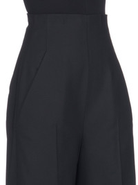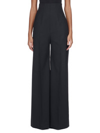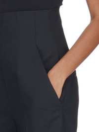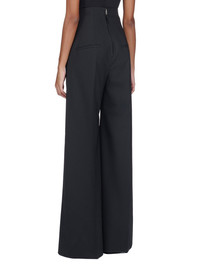 RICK OWENS FW23 LUXOR DIRT COOPER IN BLACK PAPER FINISH WOOL THESE DIRT COOPER TROUSERS ARE FULL LENGTH WITH A WIDE FIT AND A REGULAR CROTCH. THEY FEATURE AN EXTRA HIGH WAIST WHICH CLOSES WITH A CENTRE BACK ZIPPER. THEY HAVE TWO ANGULAR SIDE POCKETS AND TWO BACK JET POCKETS, AND PRESSED CREASES ON THE FRONT AND BACK LEGS THIS MEDIUMWEIGHT WOOL FABRIC HAS A DRY PAPERY HANDFEEL. IT IS WOVEN IN THE BIELLA REGION OF ITALY RENOWNED FOR ITS LONG TRADITION OF TAILORED WOOL. THIS FABRIC IS MADE FROM ZQ CERTIFIED VIRGIN WOOL WHICH ENSURES A HIGH STANDARD IN ANIMAL WELFARE, ENVIRONMENTAL SUSTAINABILITY AND SOCIAL RESPONSIBILITY. EACH BALE OF WOOL IS TRACEABLE BACK TO ITS SOURCE. - COLOR: BLACK - MATERIAL: 96% NEW WOOL + 4% ELASTANE - LINING 100% CUPRO - MODEL IS WEARING SIZE 40 - MODEL IS 181 CM TALL