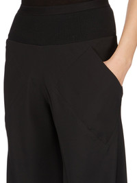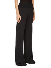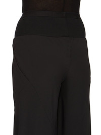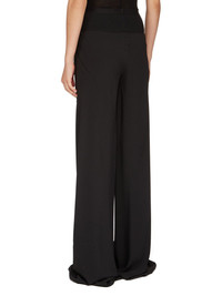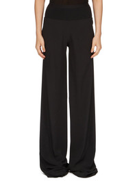 RICK OWENS SS24 LIDO BIAS IN BLACK COCOON CREPE THESE BIAS PANTS ARE FLOOR-LENGTH. THEY ARE LOOSE-FITTING WITH A BIAS CUT, A RIBBED ELASTICIZED WAISTBAND AND RAW CUT HEMS THIS LIGHTWEIGHT AND FLUID SILK BLEND CREPE HAS A DRY AND MATTE FINISH. IT IS WOVEN IN THE COMO REGION OF ITALY KNOWN FOR ITS HERITAGE OF SILK PRODUCTION THIS FABRIC IS MADE FROM FSC® CERTIFIED ACETATE WHICH ENSURES THAT THE FIBERS ARE PRODUCED FROM RESPONSIBLY MANAGED SOURCES AND NO DEFORESTATION OCCURS - COLOR: BLACK - MATERIAL: 64% ACETATE + 36% SILK - BAND 70% COTTON + 30% NYLON - MODEL IS 181CM TALL - MODEL WEARS SIZE 40