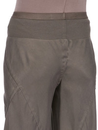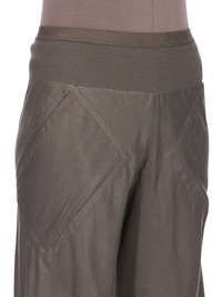 RICK OWENS FW25 CONCORDIANS BIAS IN BOSCO WASHED CUPRO THESE BIAS PANTS ARE FLOOR-LENGTH, THEY ARE LOOSE FITTING AND BIAS CUT, WITH DIAGONAL BIAS SEAMS TRACING AROUND THE LEGS. THEY HAVE SQUARE SIDE POCKETS, A ELASTIC AND RIBBING WAISTBAND RAW CUT HEMS THIS MEDIUMWEIGHT WASHED CUPRO SATIN IS FLUID AND FINISHED WITH ENZYMES WHICH GIVES THIS FABRIC ITS PEACH HANDFEEL THIS FABRIC IS MADE USING CUPRO WHICH IS BIODEGRADABLE AND 100% PLANT BASED. AS IT’S MADE FROM COTTON WASTE, CUPRO HELPS FIND A PURPOSE TO FIBERS THAT WOULD OTHERWISE BE DISCARDED COLOR: BOSCO MATERIAL: 100% CUPRO BAND 65% COTTON + 35% NYLON MODEL IS 181CM TALL MODEL WEARS SIZE 40