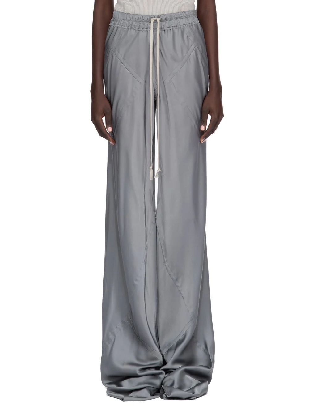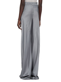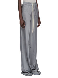 RICK OWENS FW25 CONCORDIANS DRAWSTRING BIAS IN WASHED INDIGO WASHED CHARMEUSE THESE DRAWSTRING BIAS PANTS ARE FLOOR-LENGTH WITH A LOOSE FIT. THEY ARE BIAS CUT WITH DIAGONAL SEAMS TRACING AROUND THE LEGS. THEY HAVE SQUARE SIDE POCKETS, AN ELASTIC AND RIBBING WAISTBAND RAW CUT HEMS THIS LIGHTWEIGHT AND FLUID CHARMEUSE HAS A SEMI-SHINY SURFACE AND WASHED FINISH THIS FABRIC IS MADE FROM FSC® CERTIFIED VISCOSE WHICH ENSURES THAT THE FIBERS ARE PRODUCED FROM RESPONSIBLY MANAGED SOURCES AND NO DEFORESTATION OCCURS COLOR: WASHED INDIGO MATERIAL: 61% ACETATE + 39% VISCOSE MODEL IS 181CM TALL MODEL WEARS SIZE 40