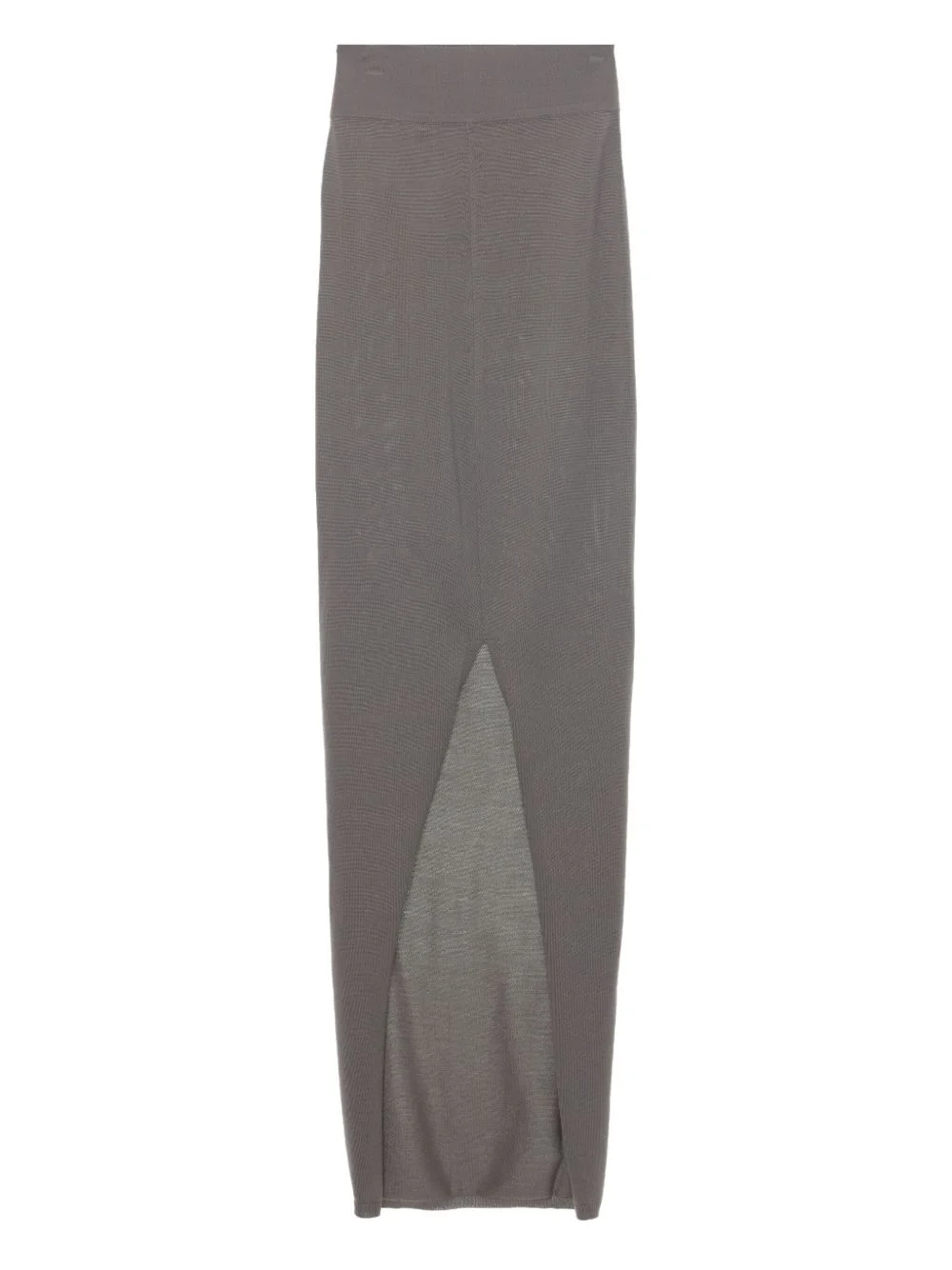 Pillar back-split maxi skirt Highlights - Grey - Ribbed texture - High waist - Maxi-length - Centre-back split Made in Italy Composition Alpaca 48%, Nylon 30%, Wool 20%, Elastane 2% Washing instructions Read Manufacturer Guidelines