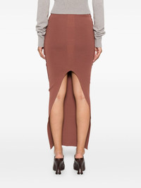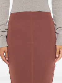 Pillar ribbed-knit skirt Highlights - Rosewood pink - Ribbed knit - Straight hem - Centre seam detail Made in Italy Composition Viscose 63%, Polyester 27%, Polyamide 7%, Elastane 3% SIZE & FIT Model measurements Height 5 ft 10 in(1.79 m) Bust/Chest 31.88 in(81 cm) Hips 35.43 in(90 cm) Waist 23.62 in(60 cm) Washing instructions Dry Clean Only