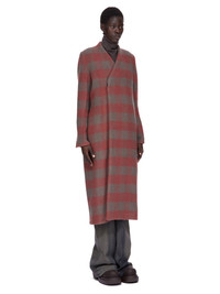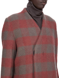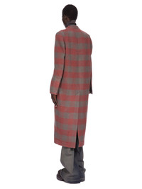 RICK OWENS FW25 CONCORDIANS MUSEUM COAT IN ROSEWOOD PLAID JUMBO PLAID THIS MUSEUM COAT IS MID-CALF LENGTH WITH LONG SLEEVES WITH BUTTONED CUFFS. IT HAS FRONT CONCEALED BUTTON FASTENING AT FRONT AND A V NECK. IT FEATURES AN INNER CUPRO LINING WITH SLEEVES THAT PULL OUT FROM THE ARMHOLE ALLOWING THE UPPER PART OF THE COAT TO BE WORN HANGING DOWN AT THE BACK. IT HAS TWO SIDE SEAM POCKETS AND A BACK VENT. IT IS FULLY LINED AND HAS INTERNAL BUTTONED POCKETS. THIS HEAVYWEIGHT JUMBO PLAID WOOL FABRIC IS WOVEN IN A SQUARE PATTERN AND FINISHED IN MULTIPLE STEPS INCLUDING TUMBLING AND BRUSHING TO ACHIEVE ITS FINAL SOFTNESS AND TEXTURE THIS FABRIC IS MADE FROM RWS CERTIFIED VIRGIN WOOL WHICH ENSURES A HIGH STANDARD IN ANIMAL WELFARE, ENVIRONMENTAL SUSTAINABILITY AND SOCIAL RESPONSIBILITY. EACH BALE OF WOOL IS TRACEABLE BACK TO ITS SOURCE COLOR: ROSEWOOD PLAID MATERIAL: 100% NEW WOOL BODY AND SLEEVES LINING 100% CUPRO POCKETS LINING 100% COTTON BUTTONS 100% BUFFALO HORN MODEL IS 181CM TALL MODEL WEARS SIZE 40
