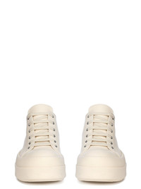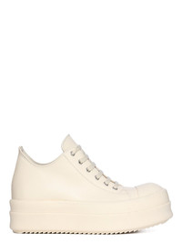 RICK OWENS SS25 HOLLYWOOD MEGA BUMPER LOW SNEAKS IN MILK/MILK/MILK FULL GRAIN CALF LEATHER THESE MEGA BUMPER LOW SNEAKS ARE UNDER-ANKLE HEIGHT, RISING AT THE BACK AND FEATURE SIX EYELETS, LACES, TOE CAPS AND DOUBLE HEIGHT, MEGA BUMPER SHARK-TOOTH SOLES THIS MEDIUMWEIGHT FULL GRAIN CALF LEATHER HAS A FLAT AND MATTE SURFACE FINISH AND IS SPECIFICALLY TANNED FOR SHOES WITH AN ABRASION-RESISTANT FINISH THIS TANNERY IS LWG CERTIFIED WITH A BRONZE RATING COLOR: MILK/MILK/MILK MATERIAL: UPPER 100% COW LEATHER TOE 100% CALF LEATHER LINING 100% CALF LEATHER INSOLE 100% CALF LEATHER SOLE 100% THERMOPLASTIC RUBBER SOLE HEIGHT 4.5CM