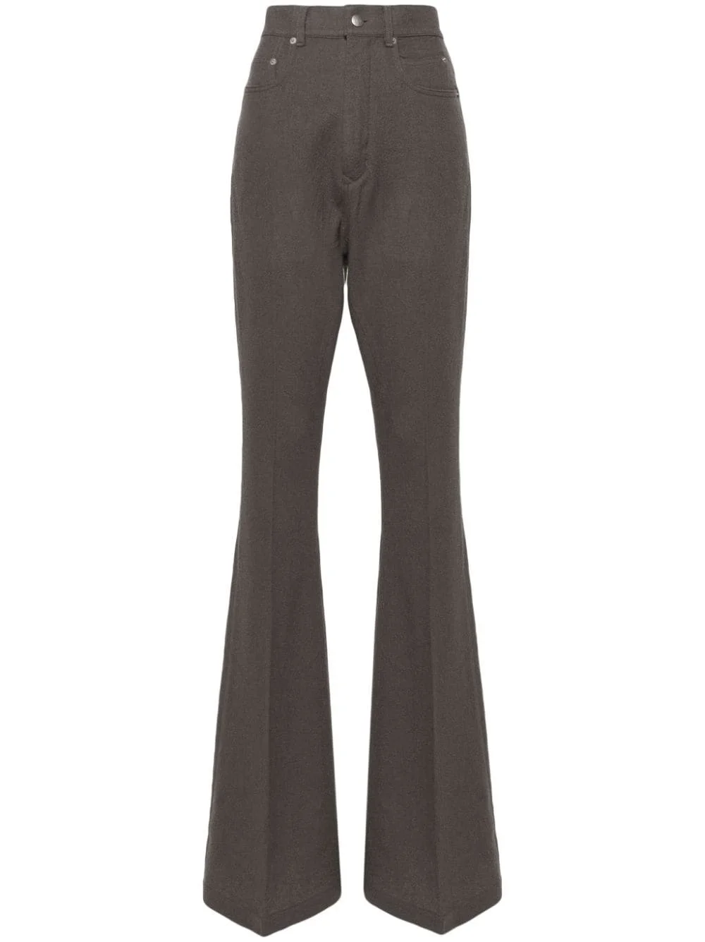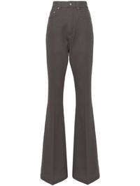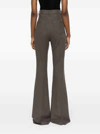 pressed-crease high-waist trousers Highlights - Taupe brown - Virgin wool - High waist - Pressed crease - Belt loops - Concealed fly and button fastening - Classic five pockets - Flared design Made in Italy Composition Virgin Wool 100% SIZE & FIT Model measurements Height 5 ft 11 in(1.8 m) Bust/Chest 31.49 in(80 cm) Hips 36.61 in(93 cm) Waist 24.4 in(62 cm) FittingInformation Designed with a flared hem, these trousers allow for a close fit at the waist with a slim fit over the leg and widening towards the hem Particularly long in length; consider your own measurements Made from a midweight non-stretch fabric This piece fits true to size – take your usual size Washing instructions Dry Clean Only