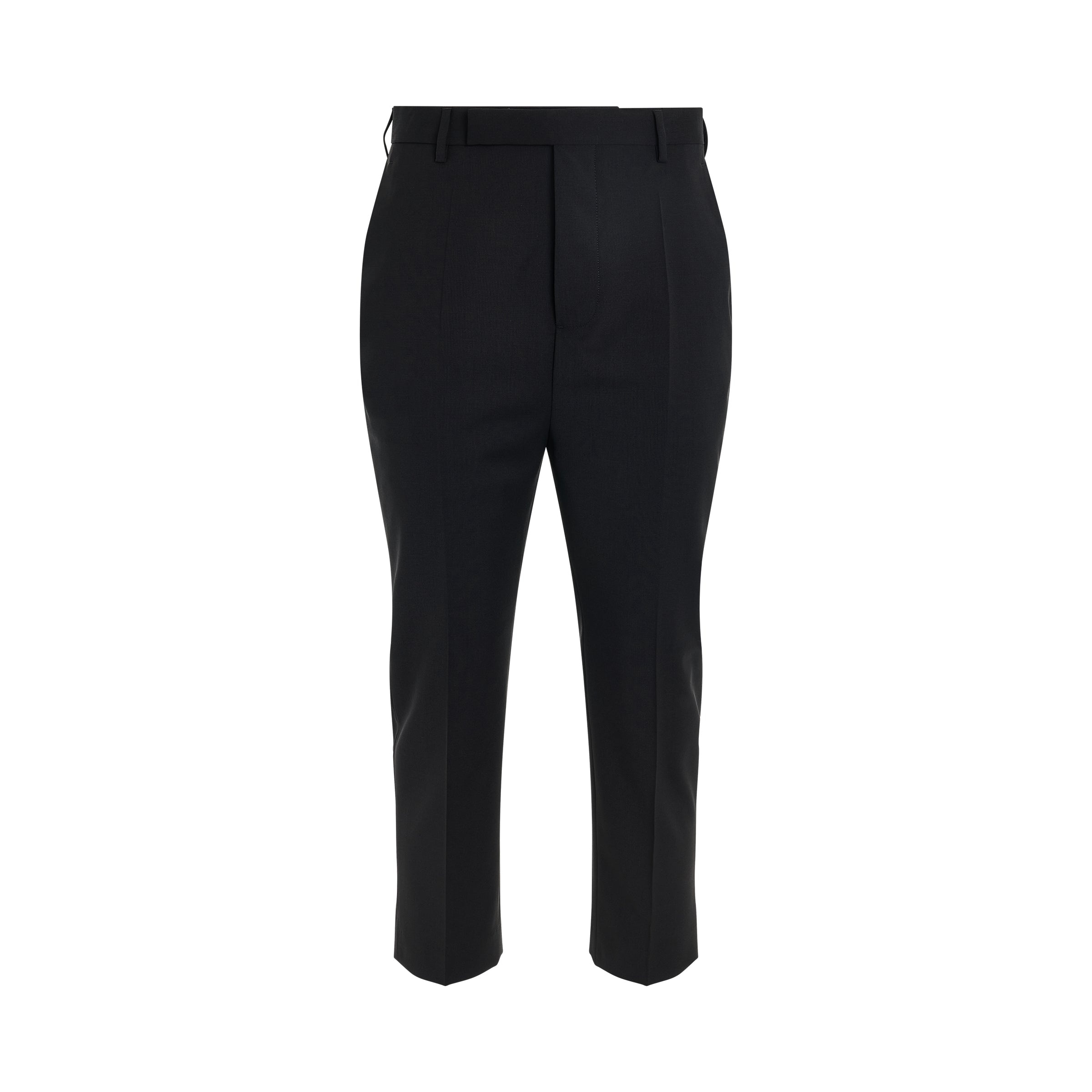 Crafted with high-quality wool material, these Astaires Cropped Pants in Black offer both style and comfort. The cropped design adds a modern edge while the wool material provides warmth and durability. Perfect for any occasion, these pants are a must-have for any fashion-forward individual. - Composition: 100% Wool - Belt loops at the waist - Two side slash pockets - Pressed crease - Two rear welt pockets - Internal logo tag - Cropped leg - Concealed front button, hook and zip fastening SKU: RP01D2305 WL 09