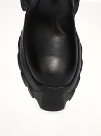 Rick Owens's Pull On Mega Tractor in Black is a bold and avant-garde footwear choice that combines functionality with high fashion. Designed for those who dare to stand out, these boots offer a unique silhouette and exceptional comfort. - Composition: Upper 100%Calf Leather-Lining 100%Calf Leather-Insole 100%Calf Leather-Sole 100%E.V.A- - Chunky tractor sole for enhanced grip and stability - Pull-on design for easy wearability - Signature Rick Owens aesthetic with a modern twist - Versatile black color to complement various outfits - High-quality construction for durability - Made in Italy SKU: RP01F6867 LOO 09