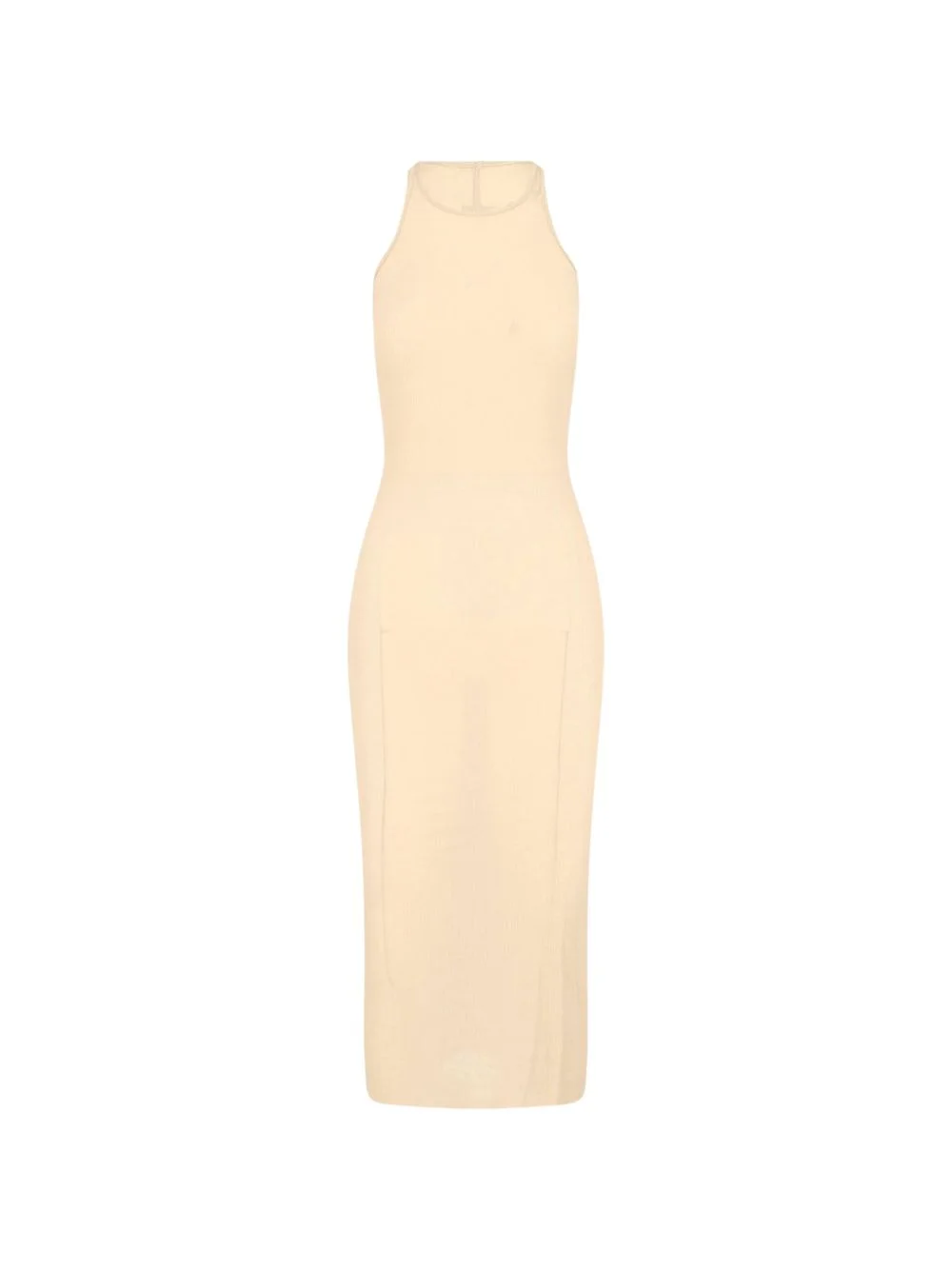 ribbed-knit midi dress Highlights - Beige - Ribbed knit - Round neck - Sleeveless - Midi-length Made in Italy Composition Viscose 88%, Silk 12% Washing instructions Read Manufacturer Guidelines