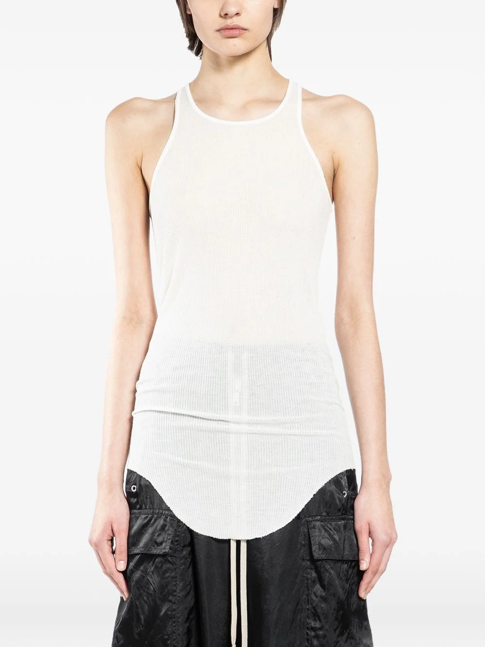 ribbed top Highlights - Off-white - Ribbed knit - Racer back - Round neck - Sleeveless Made in Italy Composition Viscose 88%, Silk 12% Washing instructions Read Manufacturer Guidelines