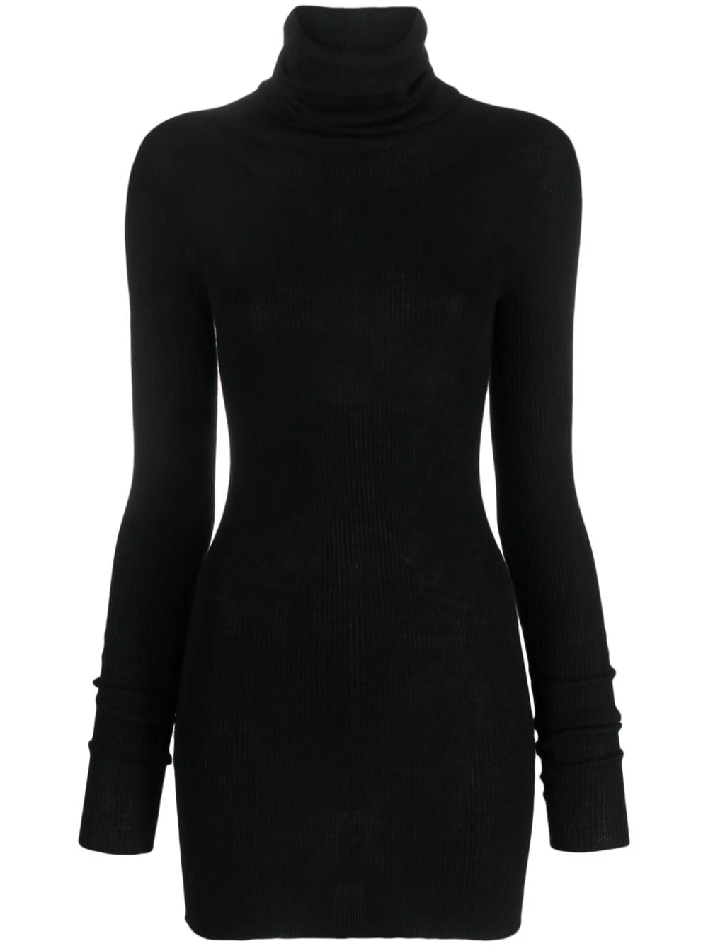 ribbed-knit wool minidress Highlights - Black - Virgin wool - Ribbed knit - Roll neck - Long sleeves - Side slits - Thigh-length Made in Italy Composition Virgin Wool 100% Washing instructions Hand Wash