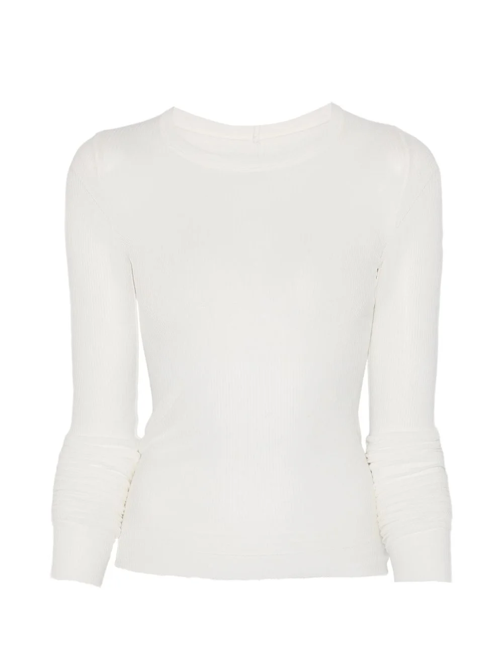 ribbed long-sleeve top Highlights - White - Ribbed knit - Long sleeves - Round neck - Fitted cuffs Made in Italy Composition FSC Viscose 88%, Silk 12% Washing instructions Hand Wash