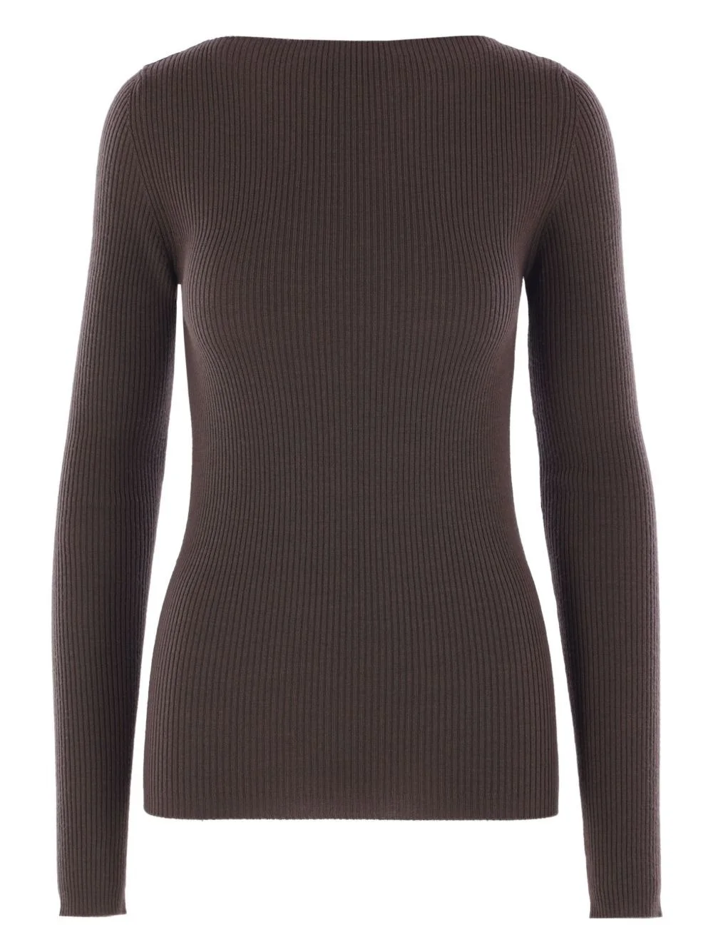 ribbed open-back top Highlights - Grey - Ribbed knit - Long sleeves - Open back - Round neck Made in Italy Composition Virgin Wool 100% Washing instructions Read Manufacturer Guidelines