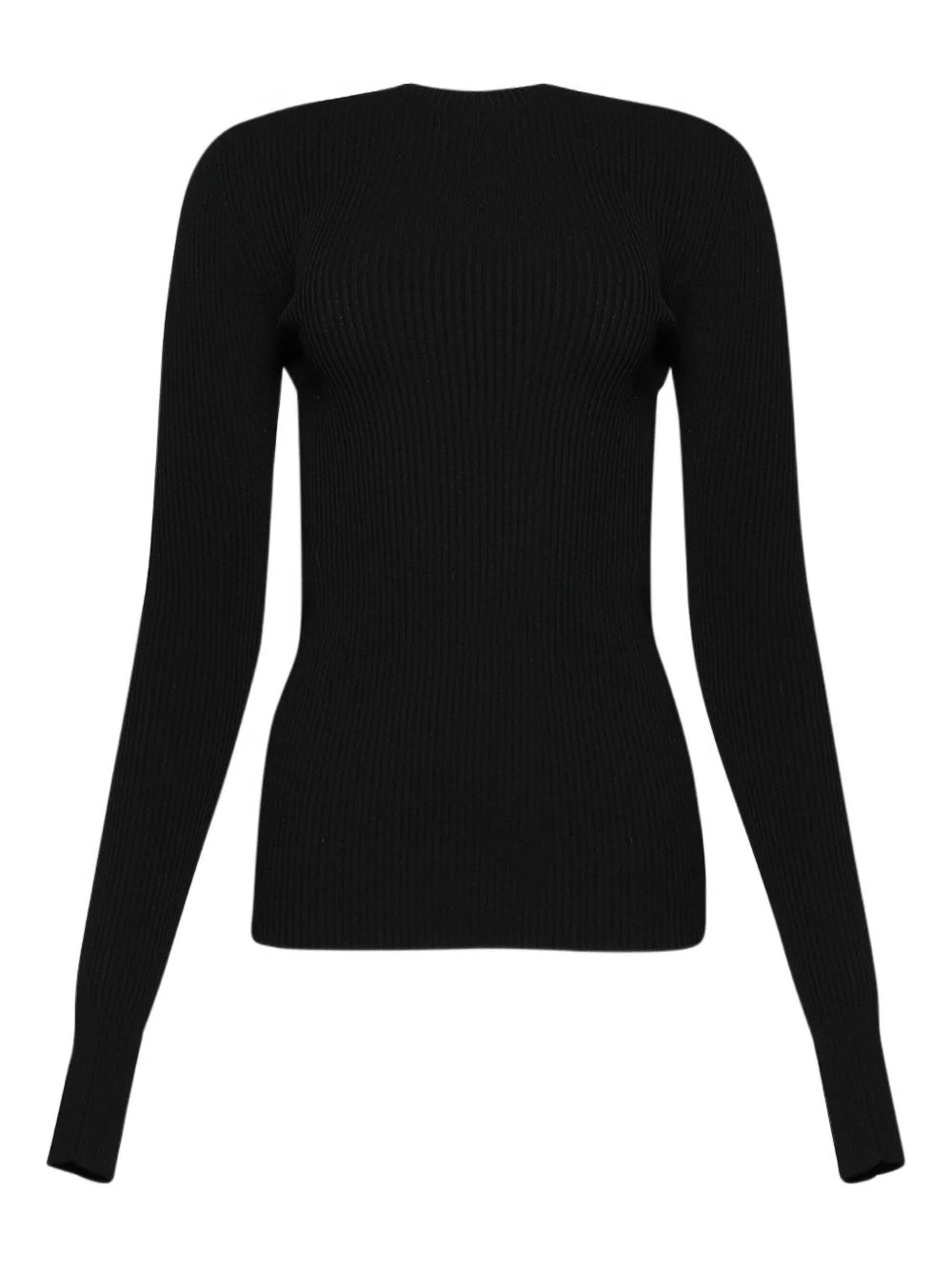 ribbed open-back top Highlights - Black - Ribbed texture - Long sleeves - Round neck - Open back Imported Composition Fabric 100% Washing instructions Read Manufacturer Guidelines