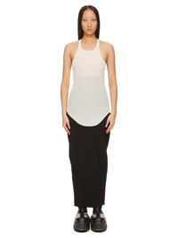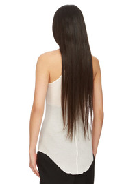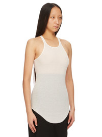RICK OWENS FW24 PORTERVILLE BASIC RIB TANK IN MILK VISCOSE SILK RIB JERSEY THIS BASIC RIB TANK IS HIP-LENGTH WITH A ROUNDED RAW CUT HEM THAT DIPS IN FRONT AND BACK. IT HAS A ROUND NECKLINE AND THIN SHOULDER STRAPS THAT FLOW INTO A SLIGHT RACER BACK. IT FEATURES THE SIGNATURE SINGLE SEAM RUNNING DOWN THE CENTRE BACK SPINE THIS LIGHTWEIGHT VISCOSE AND SILK RIB JERSEY HAS A DISTINCT RIB PATTERN AND SOFT HANDFEEL.THIS JERSEY IS MADE FROM FSC® CERTIFIED VISCOSE WHICH ENSURES THAT THE FIBERS ARE PRODUCED FROM RESPONSIBLY MANAGED SOURCES AND NO DEFORESTATION OCCURS WE STRIVE TO KEEP OUR PRODUCTION AS LOCAL AS POSSIBLE. THE FULL MANUFACTURING CYCLE OF THIS PRODUCT, FROM THE MATERIAL KNITTING TO SEWING AND FINISHING, WAS UNDERTAKEN CLOSE TO OUR HOME BASE IN CONCORDIA, ITALY. - COLOR: MILK - MATERIAL: 88% VISCOSE + 12% SILK - MODEL IS 181CM TALL - MODEL WEARS SIZE 40