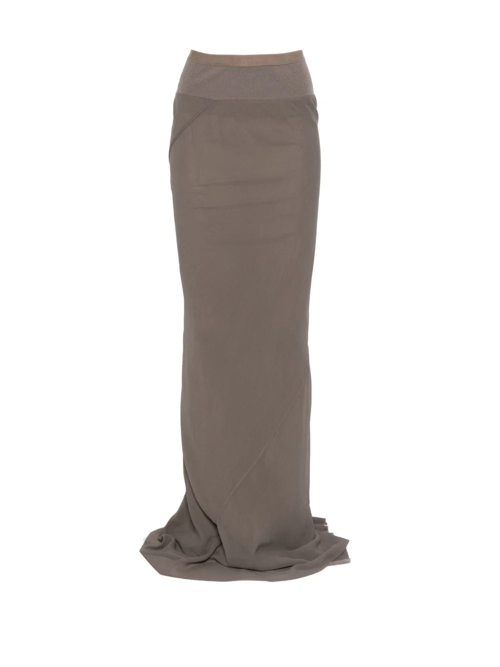 ribbed trim maxi skirt Highlights - Grey - Ribbed waistband - Draped detail - Train hem Made in Italy Composition Outer: Silk 100%, Cotton 65%, Polyamide 35% Lining: Cupro 100% Washing instructions Hand Wash