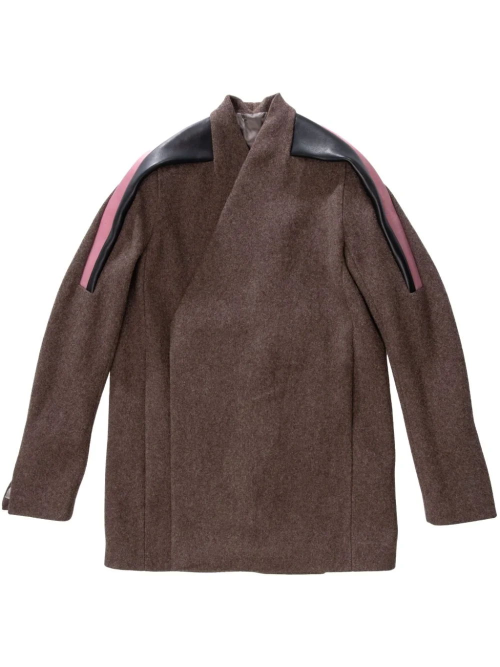 Officer jacket Highlights - Brown - Concealed front fastening - Shawl lapels - Split cuffs - Central rear vent Made in Italy Composition Lining: Cotton 100%, Cupro 100% Outer: Calf Leather 100%, Virgin Wool 100%