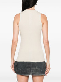 ribbed sleeveless top Highlights - Natural - Ribbed texture - Sleeveless - Round neck - Virgin wool Made in Italy Composition RWS Virgin Wool 100% SIZE & FIT Model measurements Height 5 ft 10 in(1.78 m) Bust/Chest 33.46 in(85 cm) Hips 36.22 in(92 cm) Waist 23.22 in(59 cm) Washing instructions Hand Wash