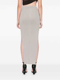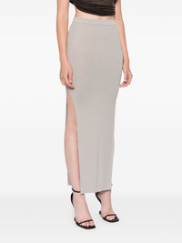 Sacri maxi skirt Highlights - Pearl grey - Virgin wool blend - Ribbed knit - Elasticated waistband - Side slits - Scallop hem - Long length - Unlined Made in Italy Composition Virgin Wool 97%, Polyamide 2%, Elastane 1% SIZE & FIT Model measurements Height 5 ft 11 in(1.8 m) Bust/Chest 35.03 in(89 cm) Hips 35.03 in(89 cm) Waist 23.62 in(60 cm) FittingInformation This maxi-length skirt is intended to be worn high on the waist The elasticated waist allows for a comfortable fit Made from a midweight stretch fabric, this piece offers elasticity and flexibility when worn This piece fits true to size – take your usual size