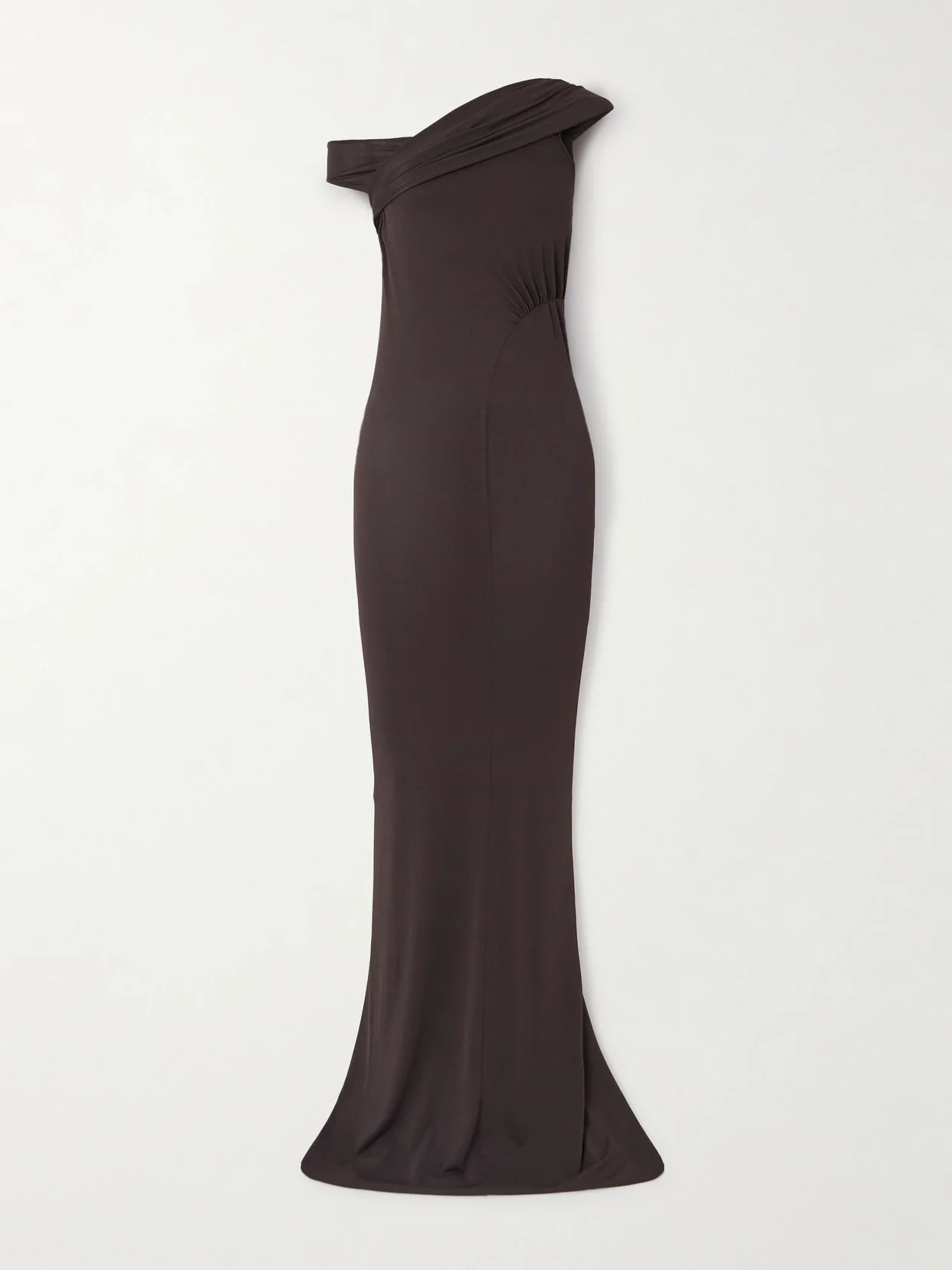 Sahara Asymmetric Paneled Gathered Jersey Gown