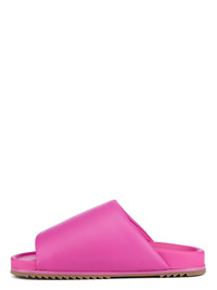 RICK OWENS SS23 EDFU SLIDE GRANOLAS IN HOT PINK FULL GRAIN CALF LEATHER THESE SLIDE GRANOLA ARE SLIP ONS AND HAVE A HEAVILY PADDED WIDE FRONT STRAP WITH A SCULPTED FOOTBED THIS FULL GRAIN CALF LEATHER HAS A SEMI-SHINE FINISH - COLOR: HOT PINK - MATERIAL: UPPER 100% CALF LEATHER - LINING 100% CALF LEATHER - PADDING 100% POLYESTER - PLANTAR FACING 100% CALF LEATHER - SOLE 100% RUBBER