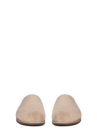 RICK OWENS SS25 HOLLYWOOD MULE GRANOLA IN FLESH VELOUR SUEDE THESE MULE GRANOLAS ARE SLIP ON, WITH A COVERED FOOT, UP TO THE BRIDGE, AND AN OPEN BACK. THEY HAVE A GRANOLA SCULPTED FOOTBED AND A SHARK-TOOTH SOLE THIS HEAVYWEIGHT CROSTA COW SUEDE LEATHER IS MATTE WITH A HAIRY SURFACE TEXTURE. IT HAS A NATURAL AND WAXY HAND FEEL COLOR: FLESH MATERIAL: UPPER 100% CALF LEATHERLINING 100% CALF LEATHERPLANTAR FACING 100% CALF LEATHER SOLE 100% COW LEATHERSOLE DETAIL 100% RUBBER