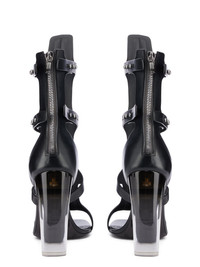 RICK OWENS SS23 EDFU ANKLE SPARTANS 11 IN BLACK FULL GRAIN CALF LEATHER THESE ANKLE HIGH SPARTANS ARE OPEN TOE SANDALS, THEY FEATURE A SHIELD-LIKE FRONT PANEL AND A BACK COVERED HEEL WHICH IS ATTACHED WITH STRAPS. THE TWO ANKLE STRAPS ARE ADJUSTABLE WITH METAL RIVET CLOSURES, AND FEATURE A SLIM PLEXI HEEL THIS FULL GRAIN CALF LEATHER HAS A SEMI-SHINE FINISH - COLOR: BLACK AND BLACK DEGRADE HEEL - MATERIAL: UPPER 100% CALF LEATHER - LINING 100% CALF LEATHER - INSOLE 100% CALF LEATHER - SOLE 100% COW LEATHER - SOLE DETAIL 100% THERMOPLASTIC POLYURETHANE