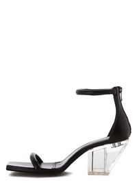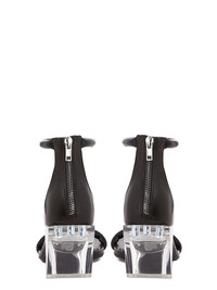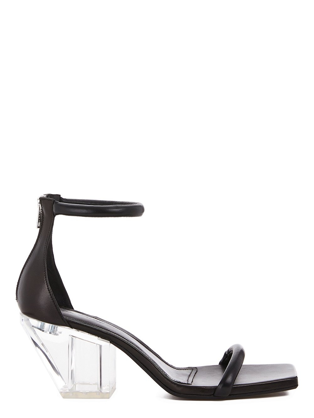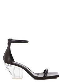 RICK OWENS SS22 FOGACHINE SANDAL SLIVER IN PEACHED LAMBSKIN THIS SANDAL SLIVER FEATURES A SLANTING CUBAN HEEL, ONE THIN STRAP ACROSS THE FOOT AND A THIN ANKLE STRAP WITH A ZIP CLOSURE AT THE BACK OF THE HEEL THIS LEATHER IS LIGHTWEIGHT AND HAS A SOFT NATURAL PEACHSKIN HANDFEEL - COLOR: BLACK/CLEAR - MATERIAL: UPPER 100% LAMB LEATHER - INSOLE 100% CALF LEATHER - SOLE 100% COW LEATHER - SOLE DETAIL 100% THERMOPLASTIC POLYURETHANE