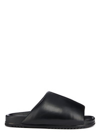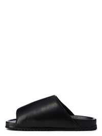 RICK OWENS SS23 EDFU SLIDE GRANOLAS IN BLACK PEACHED LAMBSKIN THESE SLIDE GRANOLA ARE SLIP ONS AND HAVE A HEAVILY PADDED WIDE FRONT STRAP WITH A SCULPTED FOOTBED THIS LEATHER IS LIGHTWEIGHT AND HAS A SOFT NATURAL PEACHSKIN HANDFEEL - COLOR: BLACK - MATERIAL: UPPER 100% LAMB LEATHER - LINING 100% CALF LEATHER - PADDING 100% POLYESTER - PLANTAR FACING 100% CALF LEATHER - SOLE 100% RUBBER