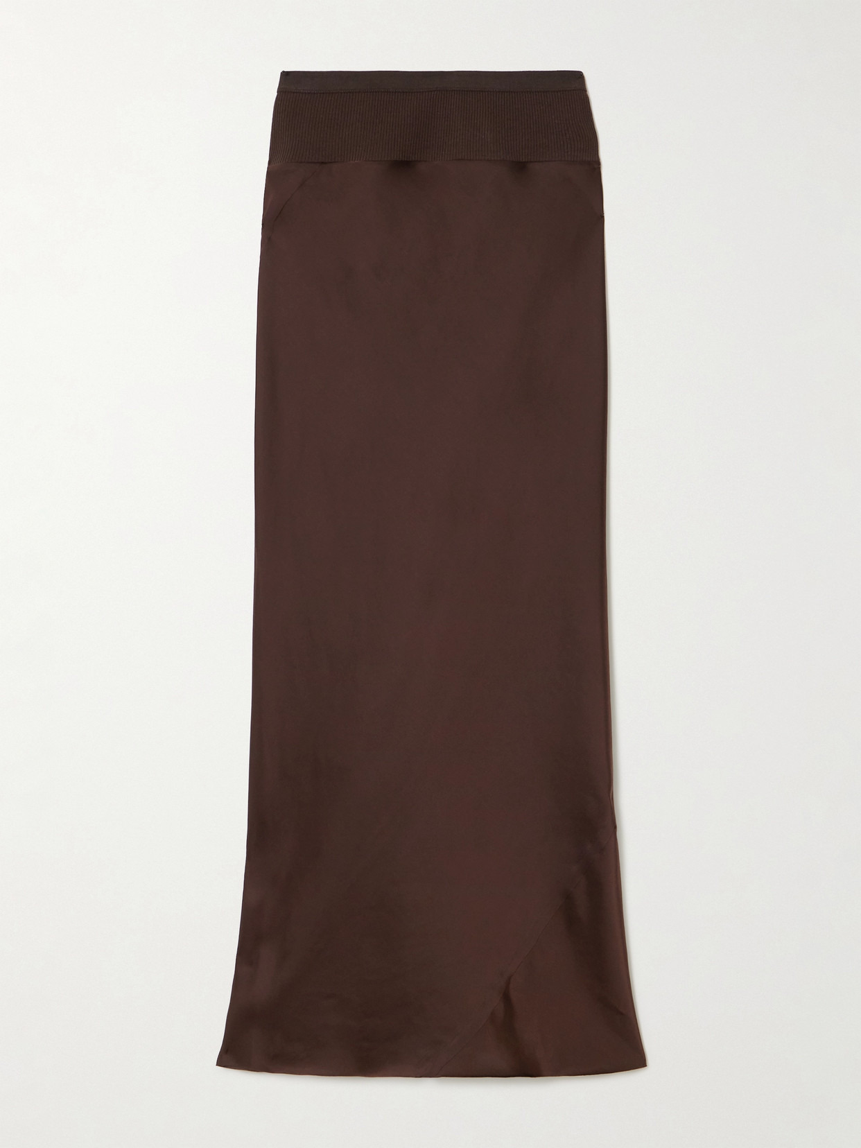 Ribbed Cotton-blend Trimmed Charmeuse Maxi Skirt