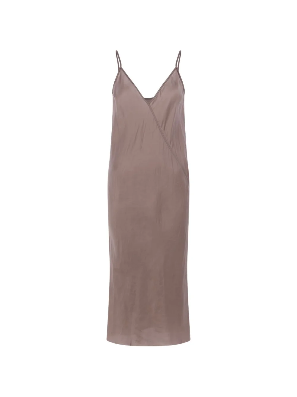 satin slip dress Highlights - Dust grey - V-neck - Spaghetti strap - Seam detailing - Slip silhouette - Straight hem Made in Italy Composition Cupro 100% Washing instructions Read Manufacturer Guidelines