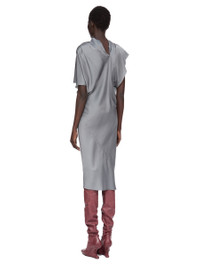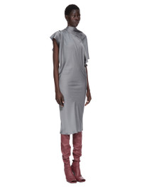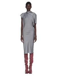 RICK OWENS FW25 CONCORDIANS SEB DRESS IN WASHED INDIGO WASHED CHARMEUSE THIS SEB DRESS IS KNEE-LENGTH, WITH A DRAPED BIAS CUT BODY, SHORT WIDE KIMONO SLEEVES AND A HIGH DRAPED COWL NECK THAT HAS AN ASYMMETRICAL OPENING AT BACK. THIS LIGHTWEIGHT AND FLUID CHARMEUSE HAS A SEMI-SHINY SURFACE AND WASHED FINISH. THIS FABRIC IS MADE FROM CERTIFIED VISCOSE WHICH ENSURES THAT THE FIBERS ARE PRODUCED FROM RESPONSIBLY MANAGED SOURCES AND NO DEFORESTATION OCCURS. COLOR: WASHED INDIGO MATERIAL: 61% ACETATE + 39% VISCOSE MODEL IS 181CM TALL MODEL WEARS SIZE 40