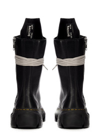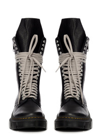 DR. MARTENS X RICK OWENS 1918 CALF LENGTH DMXL BOOT IN BLACK COW LEATHER THESE DR. MARTENS 1918 BOOTS ARE REIMAGINED BY RICK OWENS AND FEATURE EXAGGERATED LENGTH PEARL LACES AND PALLADIUM FINISH HARDWARE INCLUDING EYELETS, SPEED HOOKS AND SIDE ZIPPER. THE BOOT FEATURES AN EXTENDED GEOMETRIC TONGUE AND HAS A WOVEN DR MARTENS AIRWARE HEEL LOOP IN BLACK AND PEARL. THEY HAVE A RUBBER DMXL SOLE WITH THE DR MARTENS YELLOW WELT STITCH DMXL OUTSOLE, WHICH DROPPED AT THE END OF 2023, IS AN EXAGGERATED INTERPRETATION OF THE CLASSIC DR.MARTENS SOLEFORMED FROM A LIGHTWEIGHT EVA COMPOUND BASE WITH RESILIENT PVC PODS - COLOR: BLACK- UPPER: UPPER 100% COW LEATHER - LEG LINING: 100% COW LEATHER - UPPER LINING: 64% POLYESTER + 18% NYLON + 18% POLYURETHANE - SOLE 50% E.V.A + 50% POLIVINILCLORURO PLEASE NOTE THE SHOE SIZE LISTED ON THE PRODUCT DESCRIPTION PAGE CORRESPONDS TO UK SHOE SIZE WE STRONGLY RECOMMEND OUR CLIENTS TO CHECK THE SIZE CHART BEFORE PLACING AN ORDER TO AVOID ANY POTENTIAL INCONVENIENCE FEEL FREE TO CONTACT CUSTOMERCARE@RICKOWENS.EU FOR ANY ASSISTANCE