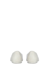 RICK OWENS FW25 CONCORDIANS BALLERINA IN MILK UNSHAVED COW LEATHER THESE BALLERINA ARE A FLAT HEELED, SLIP-ON SHOE WITH A SQUARE TOE THIS HEAVYWEIGHT LEATHER IS A HAIR-ON COWHIDE WITH NATURAL LENGTH COARSE HAIR THIS LEATHER IS TANNED IN THE VENETO AREA OF ITALY BY A TANNERY SPECIALIZED IN HAIR-ON COW LEATHER. BECAUSE THE HAIR IS NATURAL THERE CAN BE INCONSISTENCY IN THE LENGTH DIRECTION, TEXTURE AND COLOR THIS TANNERY IS LWG CERTIFIED WITH A SILVER RATING COLOR: MILK MATERIAL: UPPER 100% COW REAL FUR LINING 100% CALF LEATHER INSOLE 100% CALF LEATHER SOLE 100% COW LEATHER