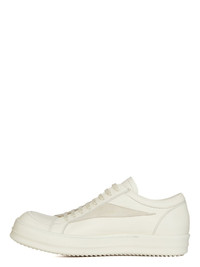 RICK OWENS SS24 LIDO VINTAGE SNEAKS IN MILK FULL GRAIN CALF LEATHER AND VELOUR SUEDE THESE VINTAGE SNEAKS ARE UNDER-ANKLE HEIGHT AND HAVE EIGHT EYELETS WITH LACES, TOE CAPS AND SHARK TOOTH SOLES. THEY HAVE A MORE SLIM-LINE PROFILE THAN THE LOW SNEAKS THIS IS A COMBINATION OF FULL GRAIN CALF LEATHER AND VELOUR SUEDE. THIS MEDIUMWEIGHT FULL GRAIN CALF LEATHER HAS A FLAT AND MATTE SURFACE FINISH AND IS SPECIFICALLY TANNED FOR SHOES WITH AN ABRASION-RESISTANT FINISH- COLOR: MILK/MILK/MILK - MATERIAL: UPPER 100% COW LEATHER - LATERAL DETAILS 100% CALF LEATHER - LINING 100% CALF LEATHER - INSOLE 100% CALF LEATHER - SOLE 100% THERMOPLASTIC RUBBER