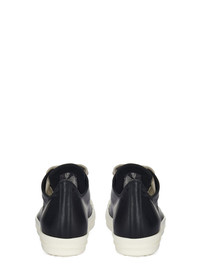 RICK OWENS FW24 PORTERVILLE JUMBOLACED LOW SNEAKS IN BLACK/PEARL/MILK/MILK FULL GRAIN CALF LEATHER THESE JUMBOLACED LOW SNEAKS ARE UNDER ANKLE HEIGHT AND FEATURE FIVE EYELETS, JUMBO LACES, TOE CAPS AND SHARK TOOTHED BUMPER SOLES THIS MEDIUMWEIGHT FULL GRAIN CALF LEATHER HAS A FLAT AND MATTE SURFACE FINISH AND IS SPECIFICALLY TANNED FOR SHOES WITH AN ABRASION-RESISTANT FINISH - COLOR: BLACK/PEARL/MILK/MILK - MATERIAL: UPPER 100% COW LEATHER - TOE 100% CALF LEATHER - LINING 100% CALF LEATHER - INSOLE 100% CALF LEATHER - SOLE 100% THERMOPLASTIC RUBBER