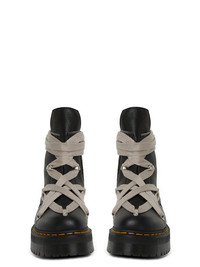 DR. MARTENS x RICK OWENS FW22 STROBE 1460 DR MARTENS BLACK BOOT IN MATTE GRAINY COW LEATHER. THESE DR. MARTENS ICONIC 1460 BOOTS ARE REIMAGINED BY RICK OWENS AND HAVE PENTAGRAM JUMBO PEARL LACING AND PALLADIUM FINISH HARDWARE INCLUDING EXAGGERATED TUNNEL LOOPS AND SIDE ZIPPER. THE BOOT FEATURES AN EXTENDED GEOMETRIC TONGUE AND HAS A WOVEN DR MARTENS AIRWARE HEEL LOOP IN BLACK AND PEARL. THEY HAVE A 4CM HIGH DR MARTENS QUAD SOLE WITH THE DR MARTENS YELLOW WELT STITCH - COLOR: BLACK - MATERIAL: UPPER 100% COW LEATHER - LINING: 100% COW LEATHER - INSOLE: 100% COW LEATHER - SOLE: 100% POLIVINILCLORURO PLEASE NOTE THE SHOE SIZE LISTED ON THE PRODUCT DESCRIPTION PAGE CORRESPONDS TO UK SHOE SIZE WE STRONGLY RECOMMEND OUR CLIENTS TO CHECK THE SIZE CHART BEFORE PLACING AN ORDER TO AVOID ANY POTENTIAL INCONVENIENCE FEEL FREE TO CONTACT CUSTOMERCARE@RICKOWENS.EU FOR ANY ASSISTANCE