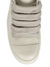 RICK OWENS FW24 PORTERVILLE JUMBOLACED LOW SNEAKS IN PALE MILK/PEARL/MILK/ FULL GRAIN CALF LEATHER THESE JUMBOLACED LOW SNEAKS ARE UNDER ANKLE HEIGHT AND FEATURE FIVE EYELETS, JUMBO LACES, TOE CAPS AND SHARK TOOTHED BUMPER SOLES THIS MEDIUMWEIGHT FULL GRAIN CALF LEATHER HAS A FLAT AND MATTE SURFACE FINISH AND IS SPECIFICALLY TANNED FOR SHOES WITH AN ABRASION-RESISTANT FINISH - COLOR: PALE BLUE/PEARL/MILK/MILK - MATERIAL: UPPER 100% COW LEATHER - TOE 100% CALF LEATHER - LINING 100% CALF LEATHER - INSOLE 100% CALF LEATHER - SOLE 100% THERMOPLASTIC RUBBER