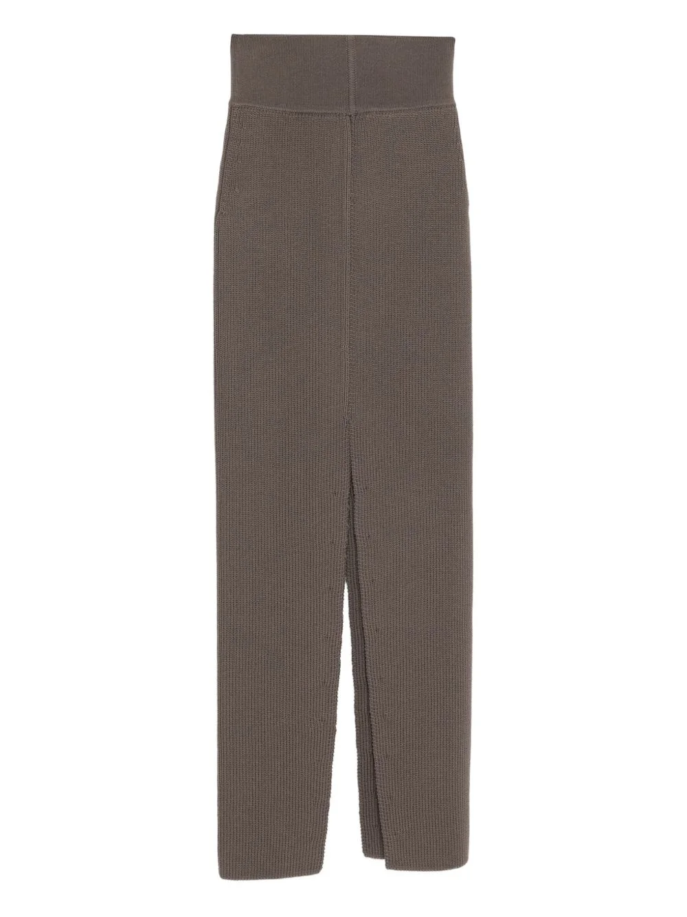 sliced skirt Highlights - Cedar brown - Elasticated waistband - Front slit Made in Italy Composition Virgin Wool 100% SIZE & FIT Model measurements Height 5 ft 10 in(1.77 m) Bust/Chest 29.33 in(74.5 cm) Hips 32.28 in(82 cm) Waist 24.01 in(61 cm) FittingInformation This maxi-length skirt is intended to be worn high on the waist The elasticated waist allows for a comfortable fit Made with a midweight knit, this piece offers some stretch Washing instructions Dry Clean Only
