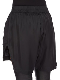 RICK OWENS SS25 HOLLYWOOD RUNWAY BOXERS IN BLACK WASHED CHARMEUSE THESE BOXERS ARE KNEE-LENGTH. THEY HAVE AN ELASTICIZED WAISTBAND WITH DRAWSTRING, A SLIGHTLY DROPPED CROTCH, SIDE WELT POCKETS AND BEVELED SIDE SPLITS THIS LIGHTWEIGHT AND FLUID CHARMEUSE IS HAS A SEMI-SHINY SURFANCE AND WASHED FINISH THIS FABRIC IS MADE FROM CERTIFIED VISCOSE WHICH ENSURES THAT THE FIBERS ARE PRODUCED FROM RESPONSIBLY MANAGED SOURCES AND NO DEFORESTATION OCCURS COLOR: BLACK MATERIAL: 61% ACETATE + 39% VISCOSE MODEL IS 181CM TALL MODEL WEARS SIZE 40