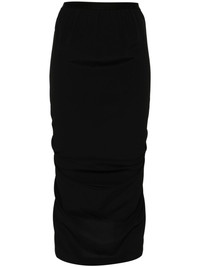 Shrimp midi skirt Highlights - Black - Fsc acetate blend - Crepe texture - Elasticated waistband - Rear elasticated trim - Rear ruched detailing - Rear slit - Unlined - Knee-length Made in Italy Composition FSC Acetate 64%, Silk 36% SIZE & FIT Model measurements Height 5 ft 11 in(1.8 m) Bust/Chest 33.07 in(84 cm) Hips 37.4 in(95 cm) Waist 25.19 in(64 cm) FittingInformation Designed with an asymmetric hem, this skirt is intended to be worn high on the waist The elasticated waist allows for a comfortable fit Made from a lightweight non-stretch fabric, this piece offers minimal elasticity when worn Washing instructions Dry Clean Only