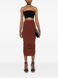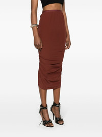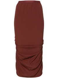 Shrimp draped midi skirt Highlights - Chestnut brown - Crepe texture - Draped design - Ruched detailing - Elasticated waistband - Asymmetric hem - Mid-length - Unlined Made in Italy Composition Acetate 64%, Silk 36% SIZE & FIT Model measurements Height 5 ft 11 in(1.8 m) Bust/Chest 31.49 in(80 cm) Hips 36.61 in(93 cm) Waist 24.4 in(62 cm) FittingInformation This midi-length skirt is intended to be worn just below the waist The elasticated waist allows for a comfortable fit Made from a lightweight non-stretch fabric This piece fits true to size – take your usual size