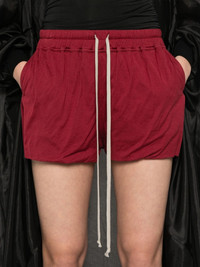 side-slits jersey shorts Highlights - Burgundy - Cotton - Jersey texture - Elasticated waistband - Two side slash pockets - Side slits - Thigh-length - Drawstring waist Made in Italy Composition Cotton 100% SIZE & FIT Model measurements Height 5 ft 10 in(1.77 m) Bust/Chest 31.49 in(80 cm) Hips 35.82 in(91 cm) Waist 25.98 in(66 cm) FittingInformation Designed for a relaxed, roomy fit The elasticated waist allows for a comfortable fit Made from a midweight non-stretch fabric, this piece offers minimal elasticity when worn This piece fits true to size – take your usual size Washing instructions Hand Wash