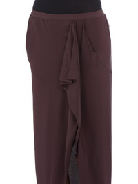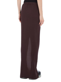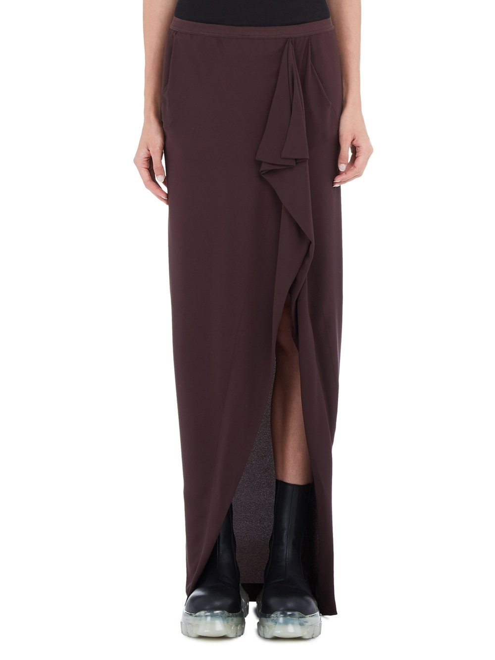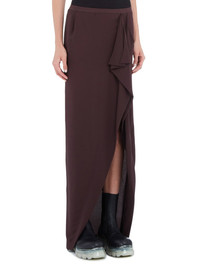 RICK OWENS FW20 PERFORMA GRACE SKIRT LONG IN BURGUNDY SILK BLEND CREPE. THIS GRACE SKIRT HAS A FLOOR LENGTH, A HIGH LEG SLIT WITH DRAPED RUFFLE ON LEFT HAND SIDE, AN ELASTICATED WAIST . * COLOR: BURGUNDY * MATERIAL: 62% ACETATE + 38% SILK * MODEL IS WEARING SIZE 40. * MODEL IS 181 CM TALL