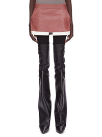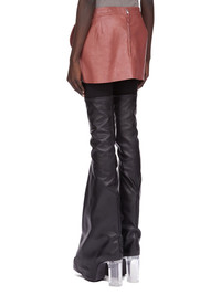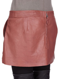 RICK OWENS FW25 CONCORDIANS OUTERSHIRT IN ROSEWOOD BLISTER LAMB LEATHER THIS FOG CUTOFF MINI FINISHES HIGH ON THE THIGH AND IS TIGHT FITTING. IT HAS A HIGH WAIST AND CENTRE BACK ZIP CLOSURE. IT FEATURES VISIBLE POCKET BAGS THAT HANG BELOW THE FRONT HEM OF THE SKIRT THIS LIGHTWEIGHT LAMB LEATHER HAS AN EXAGGERATED, UNEVEN BLISTERED TEXTURE AND A SOFT, FLUID HANDFEEL. THE BLISTERED TEXTURE IS ACHIEVED BY EXAGGERATING THE NATURAL GRAIN TEXTURE OF EACH SKIN, THEREFORE THE LOOK OF EACH SKIN IS UNIQUE THIS LEATHER IS MADE BY A THIRD GENERATION FAMILY OWNED TANNERY IN THE SOUTH OF ITALY COLOR: ROSEWOOD MATERIAL: 100% LAMB LEATHER LINING 94% CUPRO + 6% ELASTANE POCKETS LINING 52% POLYESTER + 48% COTTON MODEL IS 181CM TALL MODEL WEARS SIZE 40