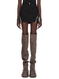 RICK OWENS FW25 CONCORDIANS BOLAN BANANA MINI IN BLACK WOOL DRILL THIS BOLAN BANANA MINI IS A HIGH WAISTED, SLIM FIT 6-POCKET JEAN SKIRT AND FALL HIGH ON THE THIGH. IT HAS A WAISTBAND WITH BELT LOOPS AND POCKET RIVETS AND CLOSE WITH A CONCEALED BUTTON FLY. IT FEATURES A LONG ZIPPER RUNNING FROM CENTRE BUTT, CURVING AROUND THE HIP TO THE SKIRT HEM. IT CAN UNZIPPER AT BACK TO EXPOSE THE BUTT AND ALSO UP FROM THE HEM TO EXPOSE MORE OF THE THIGH THIS MEDIUMWEIGHT WOOL DRILL FABRIC HAS A DISTINCT DRILL TEXTURE AND A DRY HANDFEEL THIS FABRIC IS MADE FROM RWS CERTIFIED VIRGIN WOOL WHICH ENSURES A HIGH STANDARD IN ANIMAL WELFARE, ENVIRONMENTAL SUSTAINABILITY AND SOCIAL RESPONSIBILITY. EACH BALE OF WOOL IS TRACEABLE BACK TO ITS SOURCE COLOR: BLACK MATERIAL: 100% WOOL MODEL IS 181CM TALL MODEL WEARS SIZE 40
