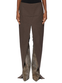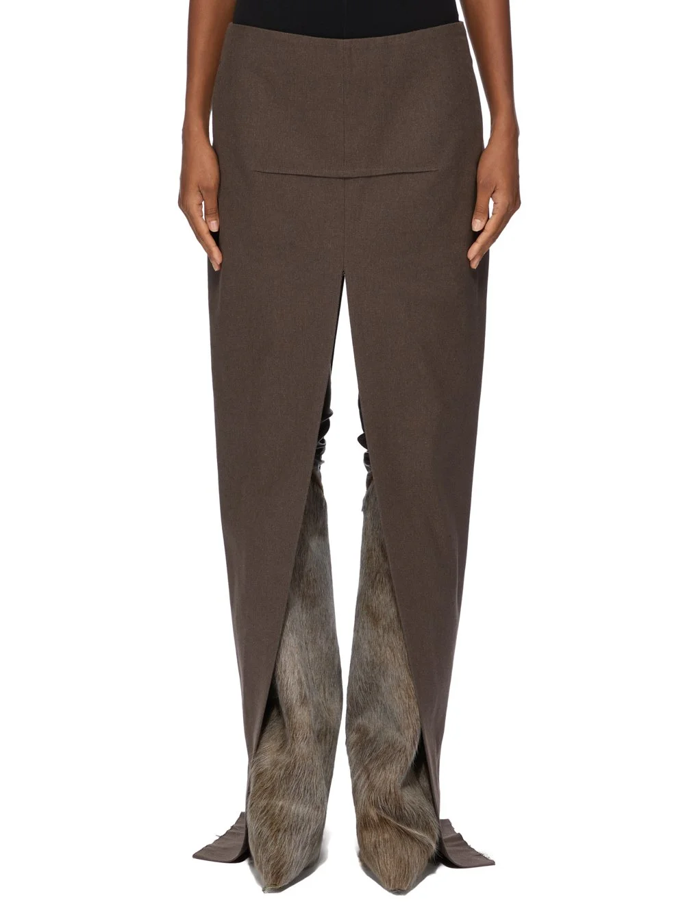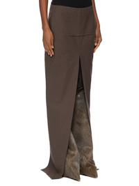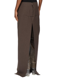 RICK OWENS FW25 CONCORDIANS RUNWAY SLICED SKIRT IN ASH COTTON WHIPCORD THIS SLICED SKIRT IS FLOOR LENGTH AT SIDES. IT HAS A CENTRE BACK ZIPPER AND A CLOSE TO THE BODY FIT. IT FEATURES TWO HIGH SLITS FRONT AND BACK AS WELL AS A FRONT AND BACK STITCH RIDGE DETAIL. IT HAS SIDE SEAM POCKETS. THIS MEDIUMWEIGHT COTTON WHIPCORD HAS A VISIBLE TWILL STRUCTURE AND A DRY HANDFEEL. IT IS WOVEN USING RAW COTTON YARNS MEANING IRREGULAR SLUBS ARE VISIBLE THROUGHOUT THE WEAVE. THE FABRIC HAS MINIMAL FINISHING IN ORDER TO KEEP THE NATURAL CHARACTERISTICS OF THE COTTON YARN THIS FABRIC WAS WOVEN ON A 1950’S VINTAGE SHUTTLE LOOM BY BONOTTO, A 4TH GENERATION TEXTILE MILL FOUNDED IN 1912 SITUATED JUST BELOW THE PREALPS IN VENETO, ITALY COLOR: ASH MATERIAL: 100% COTTON LINING 100% CUPRO MODEL IS 181CM TALL MODEL WEARS SIZE 38